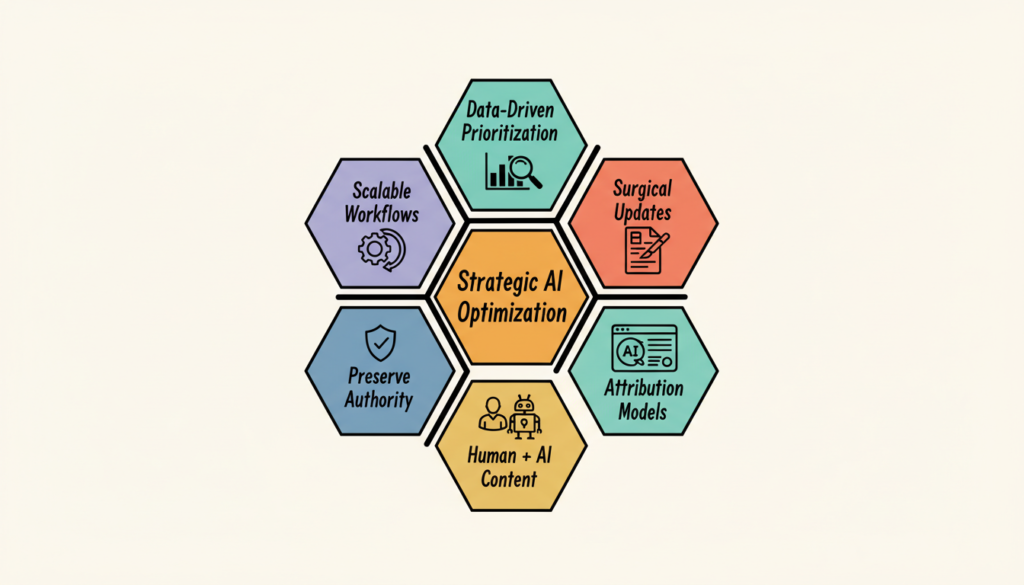 The content teams that win in AI search are not the ones rewriting everything. They are the ones optimizing strategically with data-driven prioritization and measured iteration.